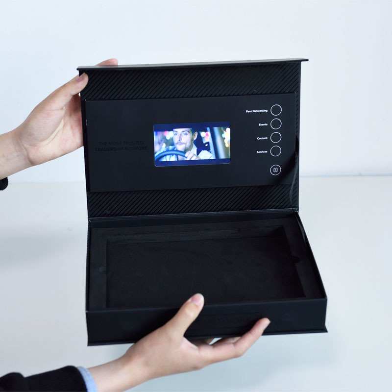 Además, la caja de regalo de vídeo de pantalla LCD brillante se puede utilizar en el sector minorista como una solución de embalaje única.Los minoristas pueden mejorar la experiencia de desempaquetado para los clientes mediante la incorporación de información del productoEste enfoque innovador puede ayudar a las marcas a diferenciarse y dejar una impresión duradera en los consumidores.